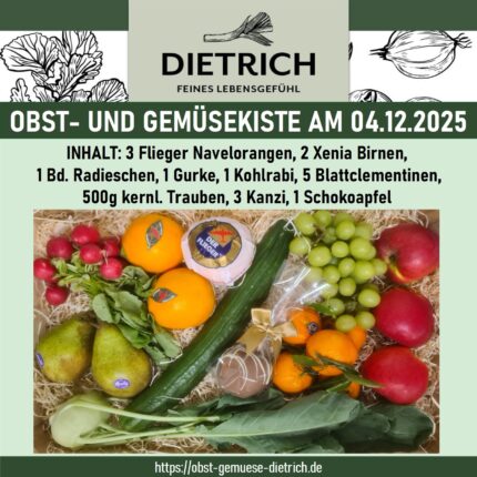 Wir liefern unsere Ware einmal wöchentlich am Donnerstag (Sonderregelung an Feiertagen). Die Lieferung erfolgt zwischen 17:00 Uhr und 20:00 Uhr.